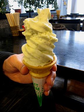 田田の中にある食堂でずんだソフトが売ってました~。早速、頼んで撮影 [カメラ](エ) ̄*)カシャッ・・・。今年は宇都宮のICでずんだソフトを見かけましたが、ずんだソフトってなかなか庄内で見かけないんですよのぉ。だだちゃ豆アイスは見かけるんですけどのお。お味は結構豆の風味が出ていて美味しかったですよ~。