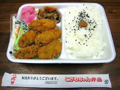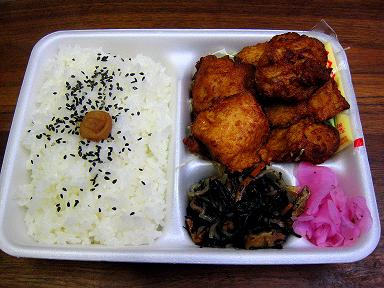 唐揚げ弁当です~。写真の画像がちょっと悪いのは携帯で写真を撮ったから^^;もっと実際は美味しそうです。唐揚げのボリュームが凄いです。ほかほか亭とはまた、違った美味しさを楽しめます。今度は牡蠣フライ弁当を試してみたいですのぉ~。