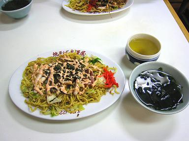 つい最近?!(なのかな・・・?)建った焼きそば屋さん(ラーメンも売っています。)に行ってきました~。焼きそば1人前400円とリーズナブルな感じです。焼きそばは上に粉が乗っていて(ん~・・・例えると、マルちゃんの焼きそばの粉が上にファサ~・・・っと乗ってるカンジデス。)ちょっと変わっています。テーブルの上にソースが置いてありますが、それをかけてみるとまた、違った感じの味になります。店内に庄内市民新聞が置いてあって、庄内のホットな話題を読んで楽しめます。お茶はセルフでおかわり自由です。