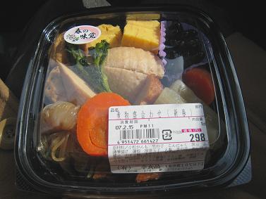 酒田市の南ジャスコのお惣菜コーナー・・・お昼時に結構そそる弁当&お惣菜が並んでいるんですのぉ。よく見てみると、おにぎりなんかも結構具沢山で庄内産はえぬき使用ですよ。煮物の盛り合わせは筍の煮物や黒豆等いろいろな野菜が入っていてかなりお得感いっぱいでした。298円でこれだけの野菜が食べれるのは本当に嬉しいかも。他に、ダイエット等を考えている人やボリュームたっぷりのがっつり食べたい人向けの弁当等、いろいろ置いてありました。