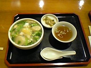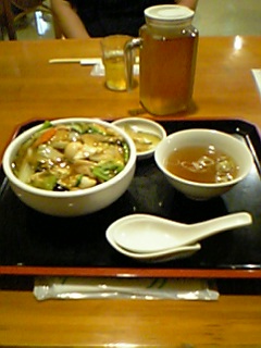 五目あんかけ御飯と海鮮あんかけ御飯です。後、他に肉饅頭?という天心も頼みました。五目のあんかけは万人受けしそうな普通にヽ(*´□`*)ッ ウマァ~!な味です。(当管理人はそう思い込んでおります。)写真では小さく?見えますが実はなかなか量はあります。海鮮あんかけ御飯はホタテがデカイ!これもなかなかあなどれない味です。ここの店の好きな所は店員さんが料理を注文する時に飲み物をピッチャーで持って来てくれるトコロw天心(肉饅頭)に関しては残念ながらちょっと蒸す時間が足りなかったのか生地が硬かったし、肉饅頭を割った時の肉汁がいまひとつ・・・でちょっぴり残念でした。家族でも恋人同士でも友人同士でもワイワイ行けそうなお店です。