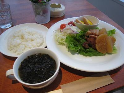 酒田の清水屋さんの中にできたカフェCieloに行ってきました。日替わりランチと野菜カレーのドリンクセット(ドリンクセットの価格の時間はAM11:30~PM2:30その他の時間は単品価格になります。)を頼みました。日替わりセットの豚の角煮と大根はヘルシーでとってもお得感いっぱいです。食後のお茶も楽しめるし、+120円でケーキも頼めます。味はお洒落な盛り付けですがお袋さんの味という感じでホッとする味でした。