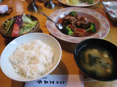 国道7号線沿いにあるカネタさんの裏手の通りにある昔ながらの洋食屋さん三五亭に行ってきました。ここのオススメメニューは何と言ってもビーフシチュー!という事でビーフシチューを頼んで見ました。ご飯に味噌汁にサラダにビーフシチュー何だか和む様なメニューです。懐かしの洋食屋さんの味という感じ・・・ビーフシチューは贅沢にビーフがゴロゴロ入っていてソースも美味しい~です。(*´ェ`*)ビーフシチューの量をちょっと減らしてもいいからもうちょっとリーズナブルなランチメニューもあればいいのに勿体無いなぁ・・・。特別な日、もしくは今日は何となく自分にご褒美あげたいな~と思う時に入ってしまうお店だと思います。おかみさんとシェフの笑顔も素敵な人情味溢れる素敵なお店デス。