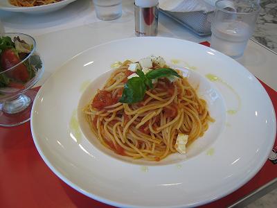 モッツァレラチーズとトマトのスパゲティ(サラダ付) 740円 (スープ付900円)