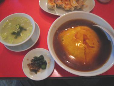今回注文したのは、五目チャーハンとギョーザとカニ玉ご飯。五目チャーハンはハムや海老やグリンピース等が入っていてご飯はややさらさら目で美味しかったです。かに玉ご飯はフワっとした玉子に餡が包んでいる感じでは無くてカッチリ焼かれた玉子に餡がかけられていていてそれが妙にマッチしていて美味しかったです。夜のお店の照明がやけに暗い感じがしたので、もそっと明るかったら良いのになぁ・・・と思いました。