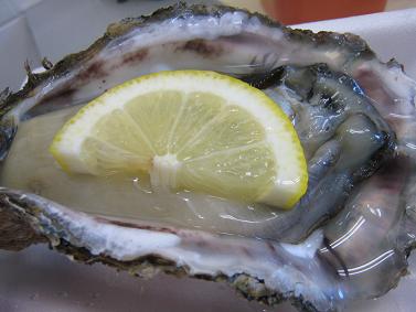 牡蠣 中 400円 大 550円 特大 650円 で販売中!(写真は大です。)