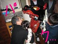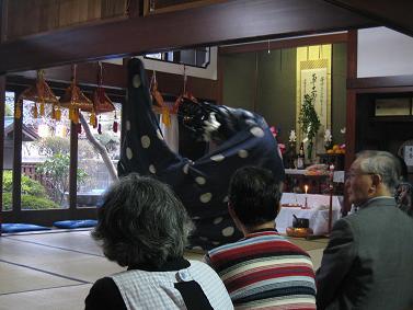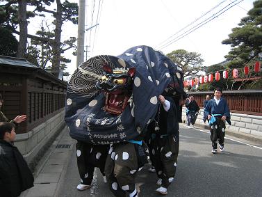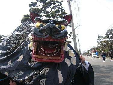 今年もイイコにしてないと食べられちゃうよ~・・・パクッ!!女の子が怖くて半べそ状態だったりシマス。(ナマ○ゲ?!・・・いやいや、頭を獅子から噛んで貰うと縁起がイイのです。)
